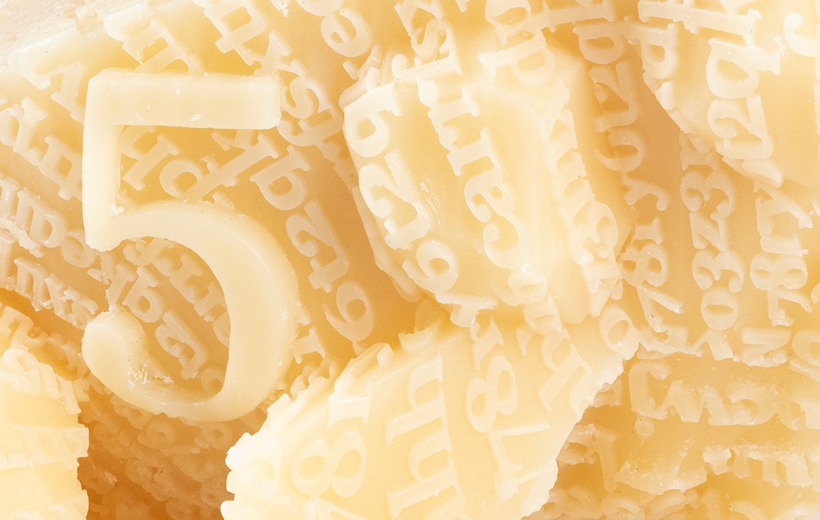 misty forest oak scent; sardinia sand beige soy wax ‘5’ extruding from both sides, randomized hash pattern 11.5 x 9 x 7 inch candle; 7 lbs