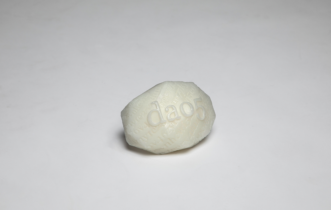 deep forest root scent; camel hide beige oils of coconut, olive, soybean, and shea butter, sodium hydroxide and distilled water 'dao5' extruding from front, '5' extruding from back, randomized hash pattern 4 x 2 x 1 inch; 3 oz
