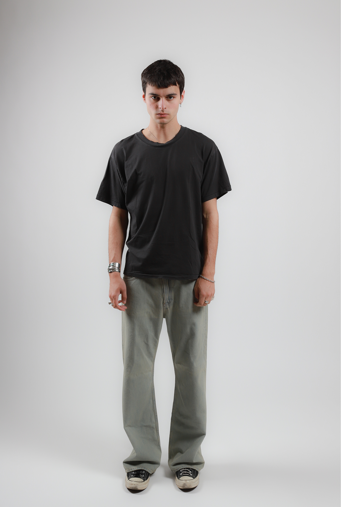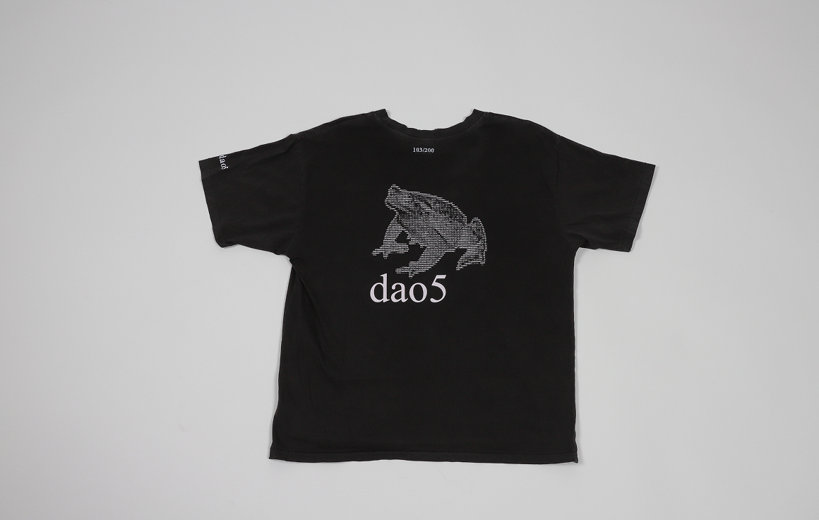 oversized fit; acid black 6 oz jersey; drop shoulder hand distressed collar dao5 original toad logo on center back hand-stitched ‘n/200’ on back collar of each tee